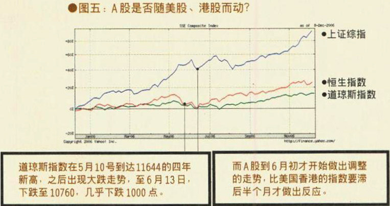 有投资者也许会问,既然海外市场走势对内地A股的影响是从2001年开始的,为什么沪综指的走势图从2001年到2005年底与恒生指数,道琼斯,标准普尔500走势还有很大的区别呢?