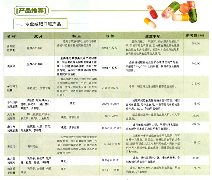 最受欢迎的减肥口服产品: