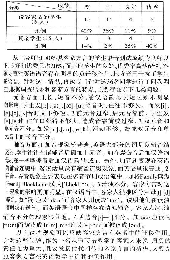 关键词:客家方言 英语教学 迁移