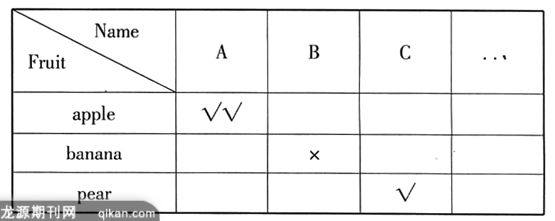 渴望了解朋友是人的天性,小学生也不例外。所以在任务教学中依据教材内容,结合学生实际生活的经验,设计简单易操作的调查,能够给学生带来学习运用语言的强烈动力,也能培养学生用英语解决问题的能力。如教到Fruit时,我让学生Make a survey:Which is your favorite fruit?将学生分组,每组一张表格(如下图),学生相互之间询问:Which is your favorite fruit?并填写表格,如喜欢就在相应的水果格中打√,不喜欢就打×。然后每组展示结果,上台汇报,同时教师用柱状图作统计,选出学生最喜欢的水果。