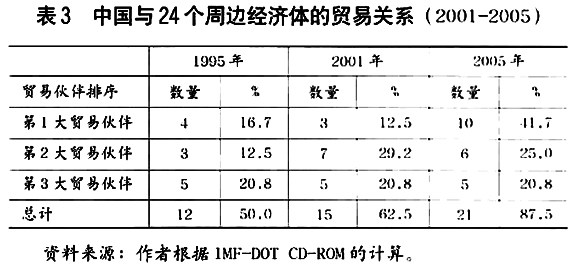 第一,对周边经济体的外溢效应。中国经济实力的增强不仅改善了本国13亿人口的物质生活水平,也为周边国家的经济发展注入了活力。中国与东亚地区的一体化程度在迅速加深。中国周边经济体共计有24个②,2005年,中国是10个经济体的第一大贸易伙伴、6个经济体的第二大贸易伙伴、5个经济体的第三大贸易伙伴,三者合计为21个经济体。我们估计,2010年,中国很可能成为周边所有经济体的前三大贸易伙伴之一,同时,以中国为最大贸易伙伴的经济体数量将进一步增加。